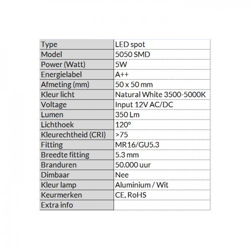 LEDSPOT MR16 5W 3500-5000K aantal