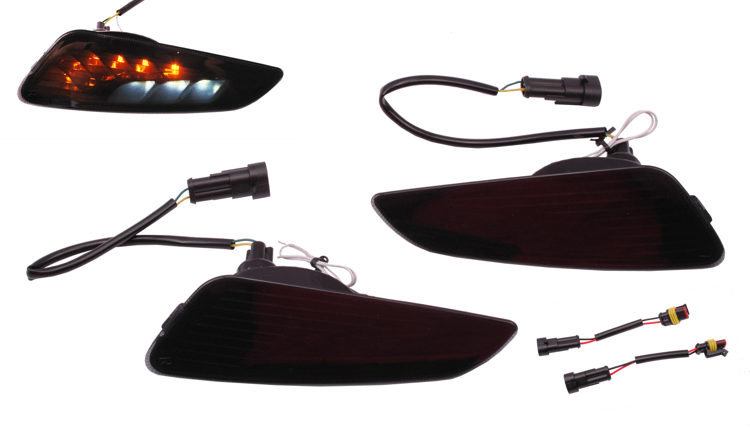 Richtingaanwijzer / knipperlicht set voorzijde LED in zwart / smoke / getint met dagrijverlichting (DRL) excl. LED-relais | Vespa Primavera / Sprint